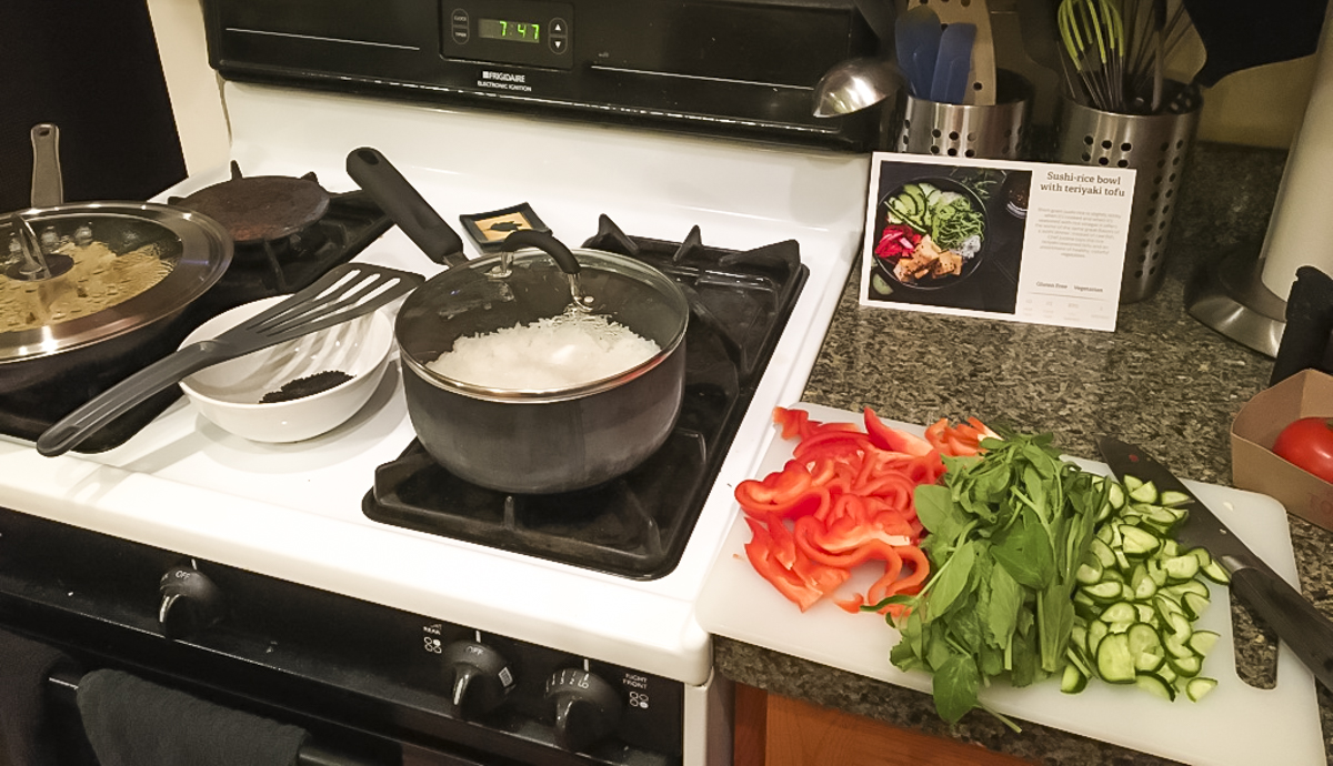 To prepare each meal, you grab the bag and recipe card for the meal you wish to cook. The ingredients are mostly whole, which means you’ll have some cutting to do. The directions are super simple and even help you pace each task so everything is done at the same time.